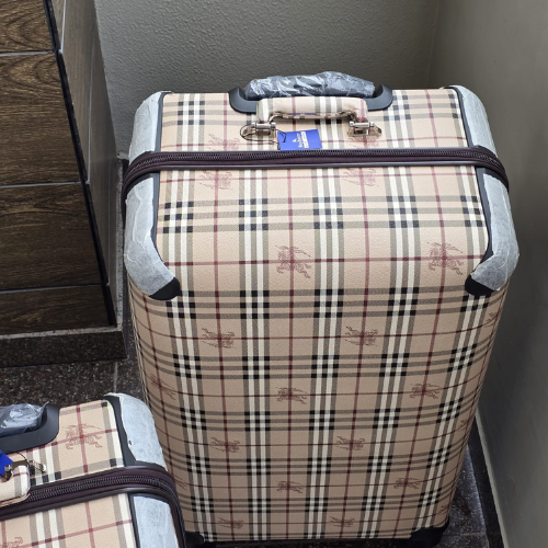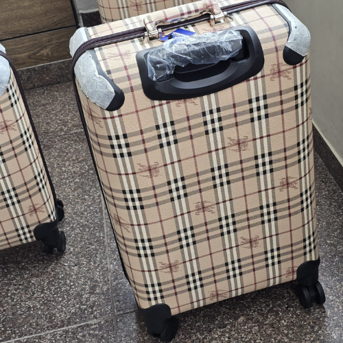 Burberry Checkered Pattern Luggage with Beige and Red Tones quantity