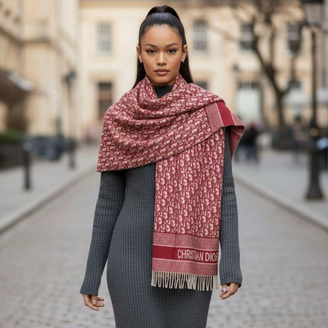 Christian Dior Stole With a Red and Beige Pattern