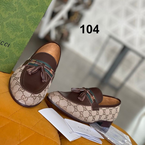 Gucci loafers with a gold-accented black and gray design
