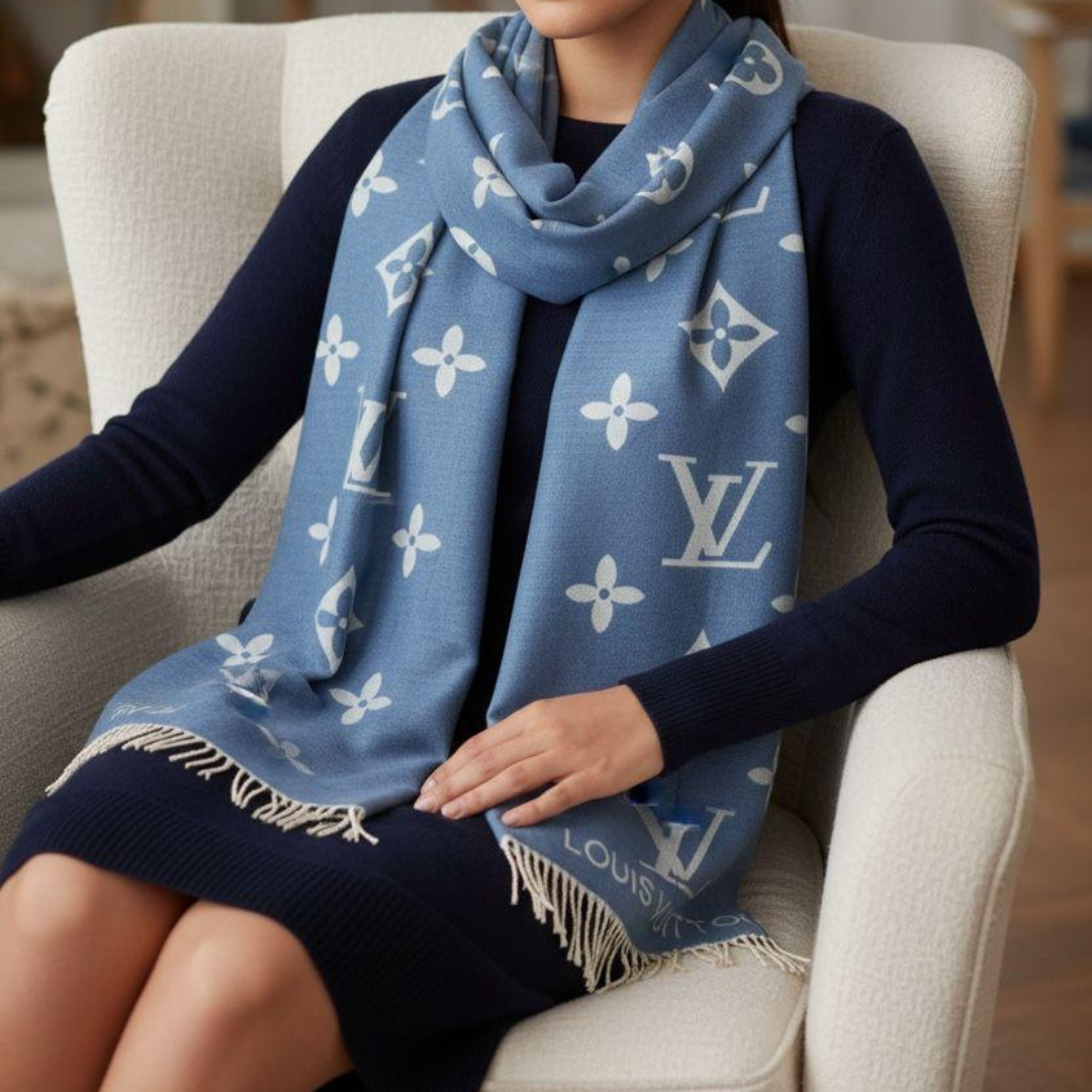 Louis Vuitton Stole in Blue With White Floral Patterns
